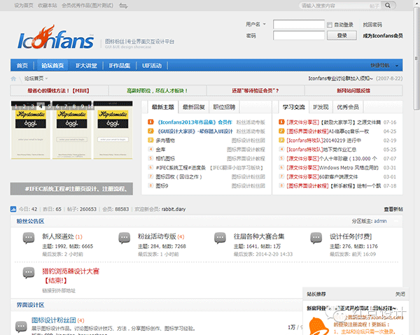 最早期的国内UI设计师的交流论坛,很多移动UI设计的前辈们都是iconfans里面出来的。在近期iconfans改版之后,更方便浏览优秀的作品了!
