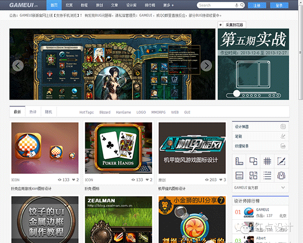 这个网站适合做游戏设计的小伙伴们,作品分类细致。并且也可以上传分享自己的作品和经验。