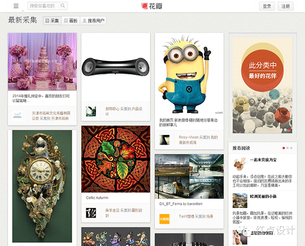 瀑布流的鼻祖,素有图片版twitter之称。花瓣啊、堆糖啊都是pinterest的汉化版本。如果你英文杠杠的,那么可以看到不少的外国友人的好作品。