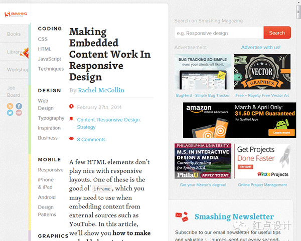 一个很牛逼的网页设计网站,有本书叫《众妙之门:网站UI设计之道》(很多小伙伴都知道吧!!)就是Smashing Magazine上线以来的精华总结 。